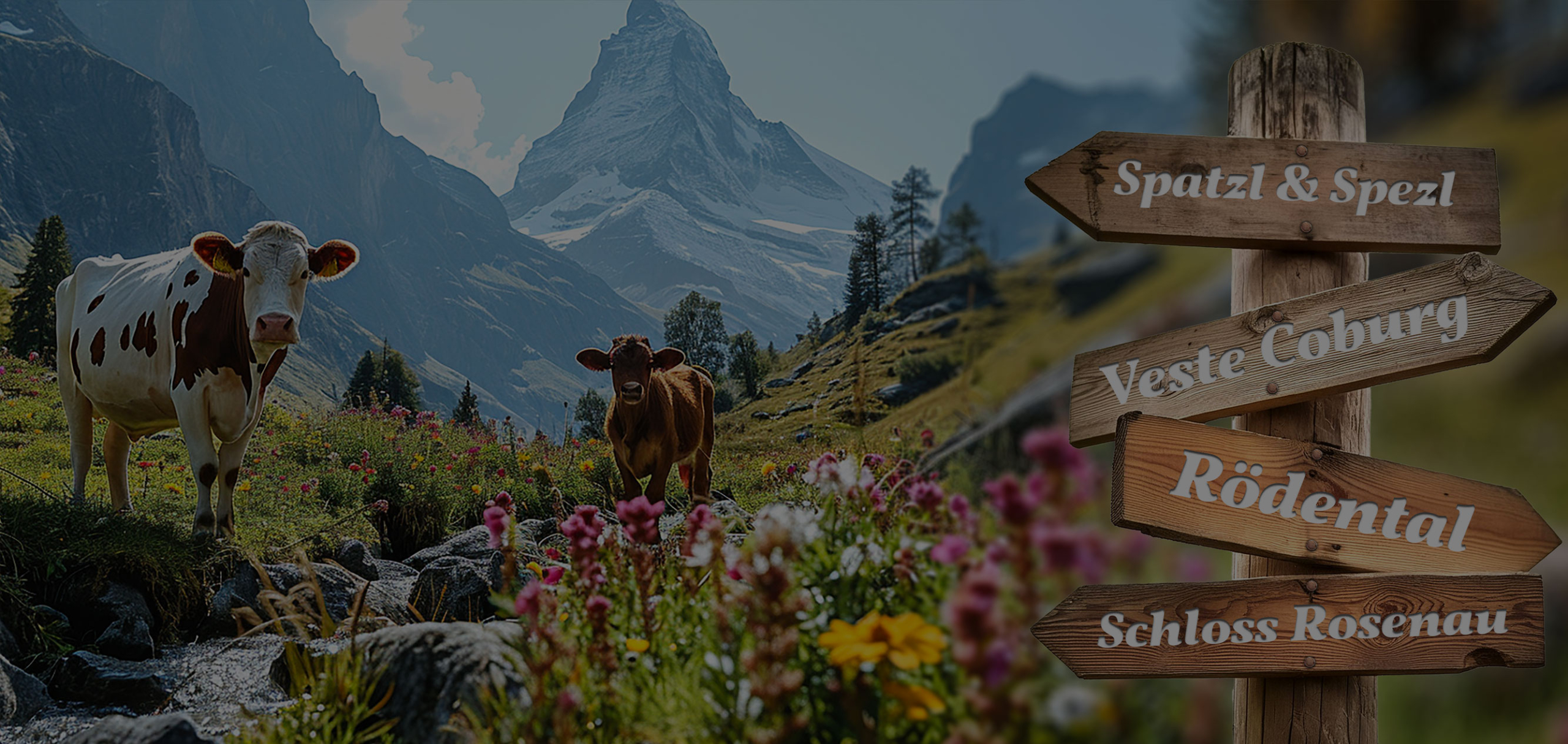»Unweit der romantischen Parkanlage des Schlosses Rosenau liegt sie: die Almhütte. Eine Eventlocation – idyllisch eingebettet zwischen Itz und Wohlsbach, nahe Coburg. Ein rustikales Kleinod mit Liebe zum Detail. Als Besucher fühlt man sich sofort in die Hüttenwirtschaft einer alpinen Hochalm versetzt.«